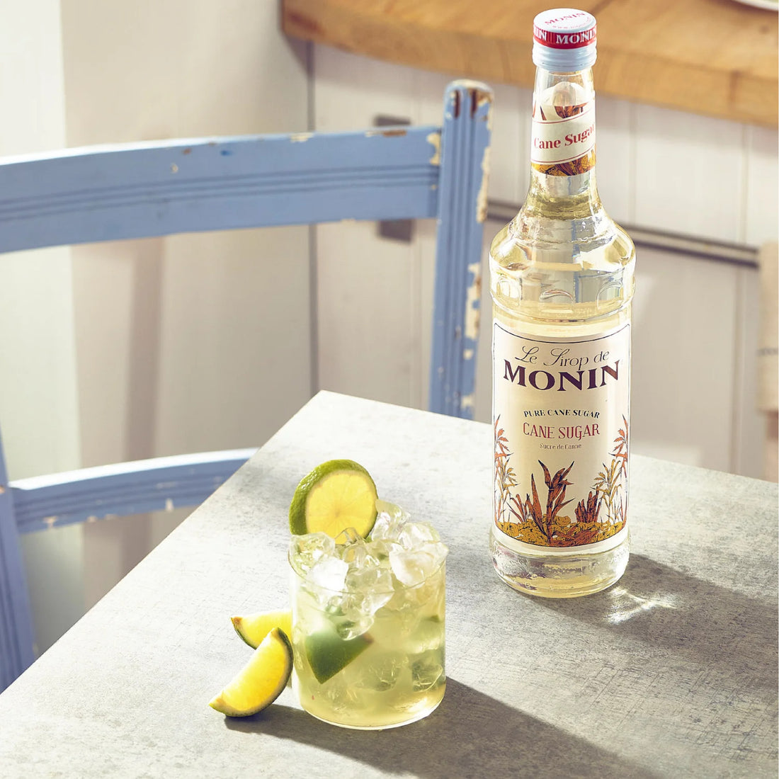Muddle lime with Monin Cane sugar syrup, add cachaça and stir. Fill with crushed ice and stir. Garnish with more lime and serve!