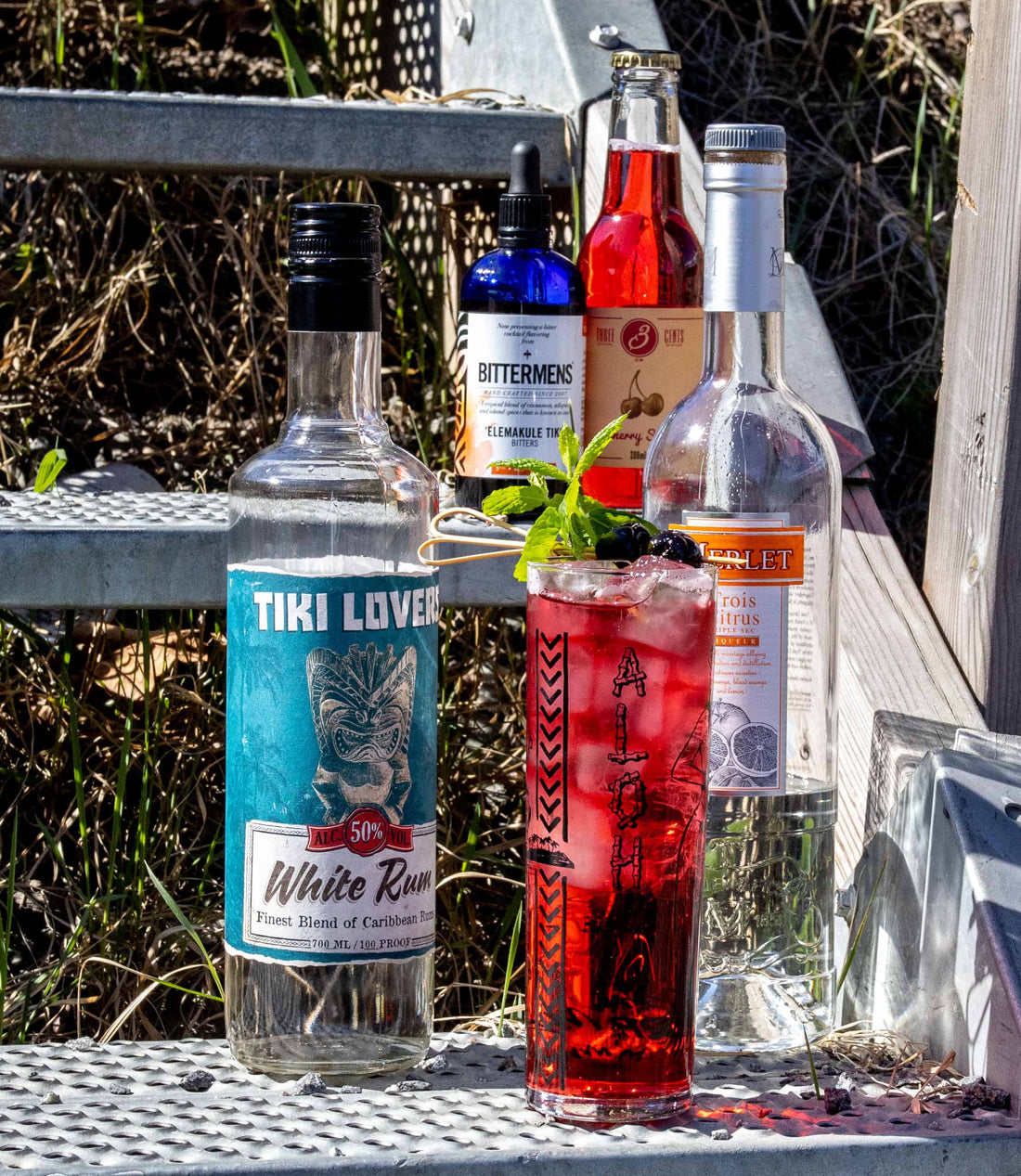 A riff of the classic tiki cocktail Mai Tai in a cherry and highball costume. Originally created by Victor Jules Bergeron aka Trader Vic in 1944 at his restaurant in San Fransisco and are today a well-known cocktail considered as a classic. Throughout the years many twists have emerged as this one, which transforms the drink into a refreshing long drink.