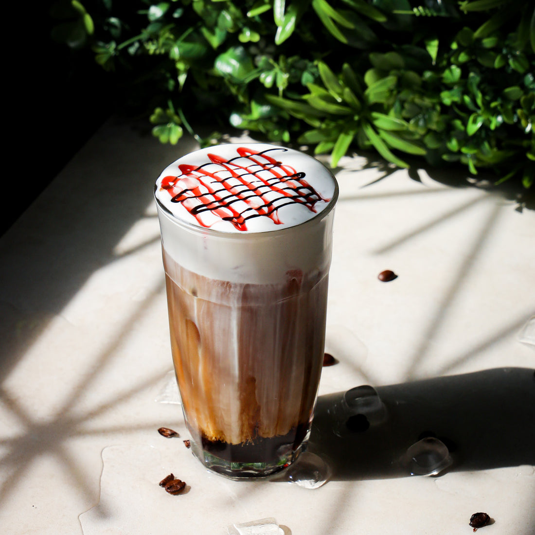 White chocolate cream: Mix the cream with White chocolate syrup and pour on top. Decorate with L'Artiste de Monin.