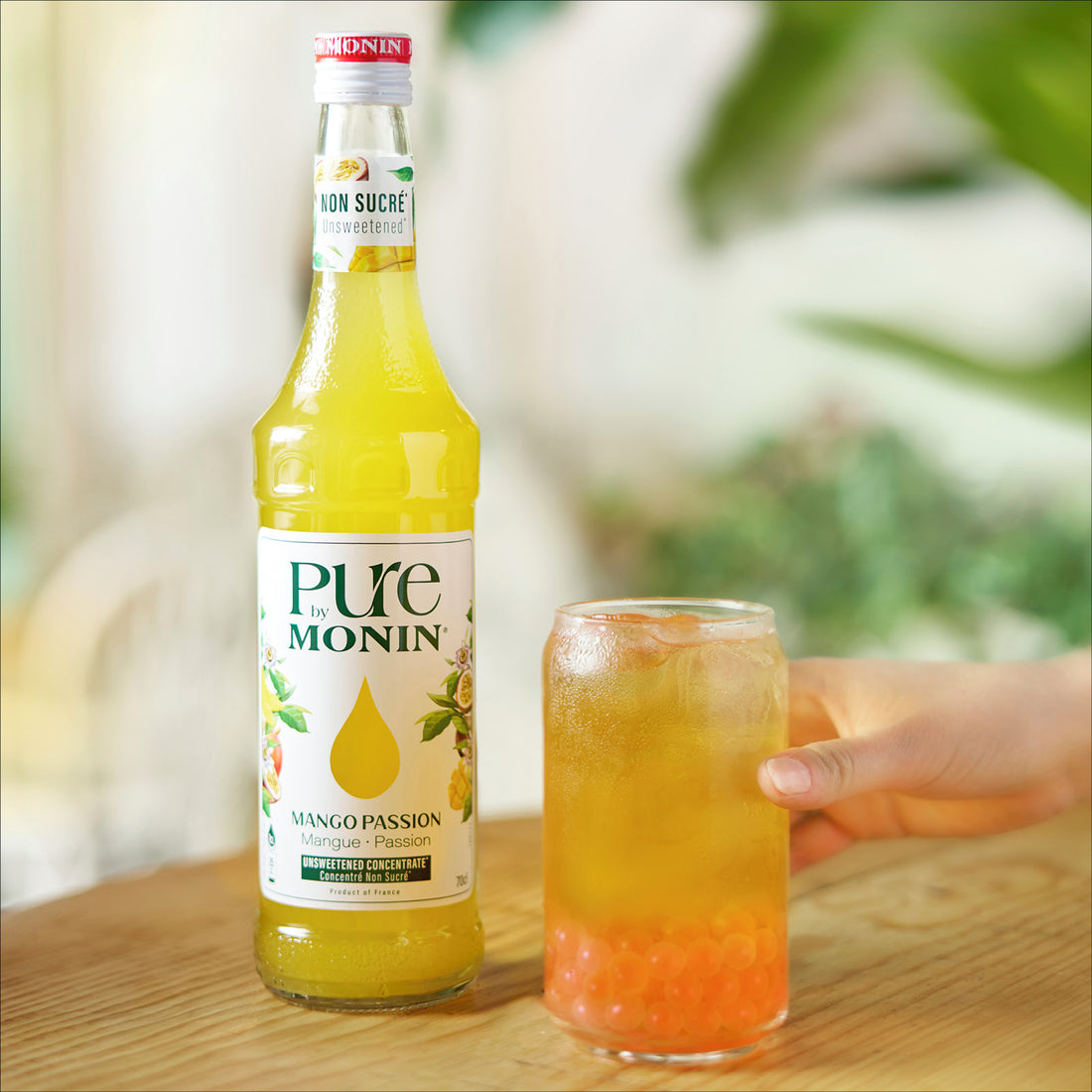 PURE by MONIN Mango-Passion combines the rich tastes of mango and passion fruit, creating a naturally sweet and tangy experience. It pairs perfectly with the tapioca pearls and your favourite tea base, resulting in a refreshing summer treat.