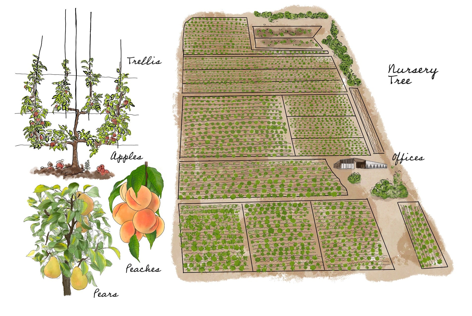 Nurturing the environment, Monin has planted 13 hectares with 350 varieties, ranging from apple and pear to prune and cherry. Six full-time individuals work passionately to grow a diverse range of trees.