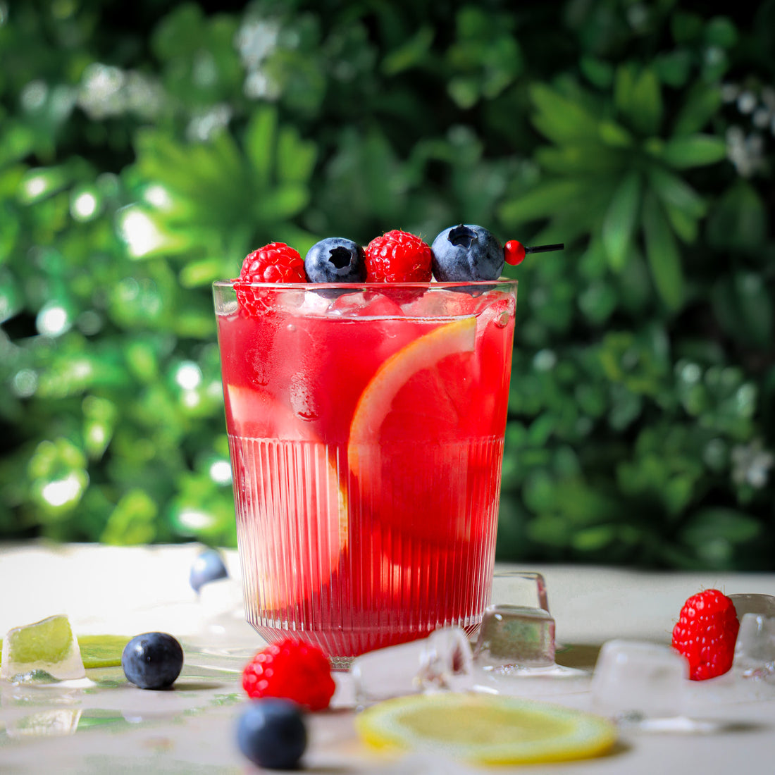 Add the ingredients into your glass, add ice, and stir. Garnish and enjoy!